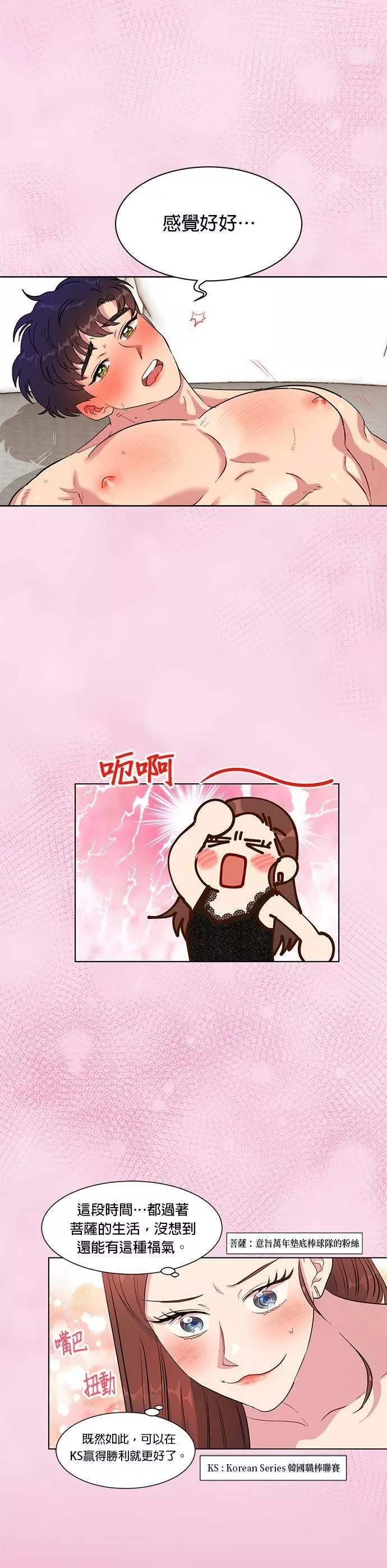 拯救万年垫底棒球队又名,类型为爱情的高人气漫画,漫画简介:【建议15岁以上阅读】 只要和他接吻,就会轰出全垒打,要是XX的话就会...赢球?!万年垫底棒球队「未来胜利队」的球迷申承雅对他们失望透顶,在下定决心要脱粉的那一刻,一时冲动地和坐在隔壁的球迷崔尊接吻...