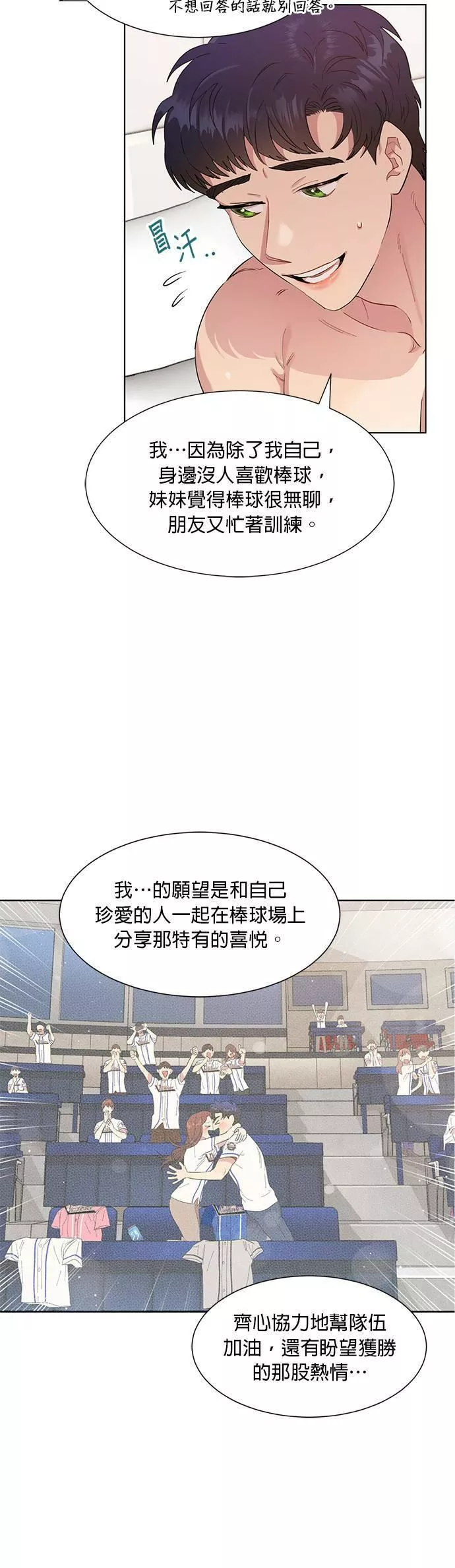 拯救万年垫底棒球队又名,类型为爱情的高人气漫画,漫画简介:【建议15岁以上阅读】 只要和他接吻,就会轰出全垒打,要是XX的话就会...赢球?!万年垫底棒球队「未来胜利队」的球迷申承雅对他们失望透顶,在下定决心要脱粉的那一刻,一时冲动地和坐在隔壁的球迷崔尊接吻...